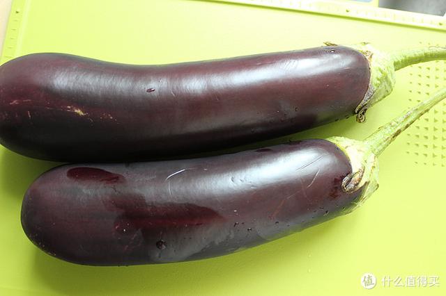 准备中等个头的茄子两个,洗干净后切除茄子把儿,再擦干表面