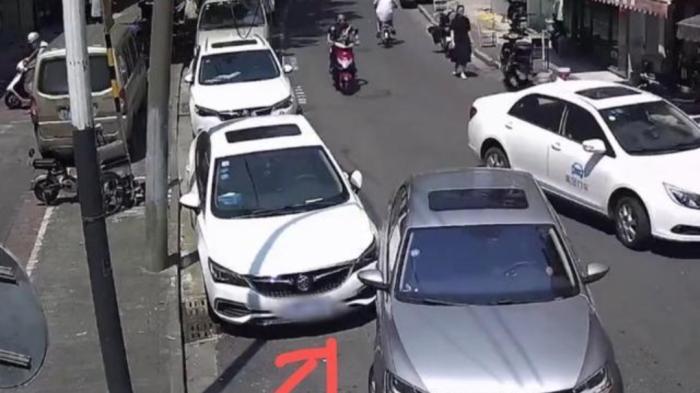 近日,南京某路段街边停靠着一辆白色车,随后王先生开着一辆灰色轿车通过此处的狭窄巷子,不小心碰到路边的这辆白色车,并把白色车划伤了。
