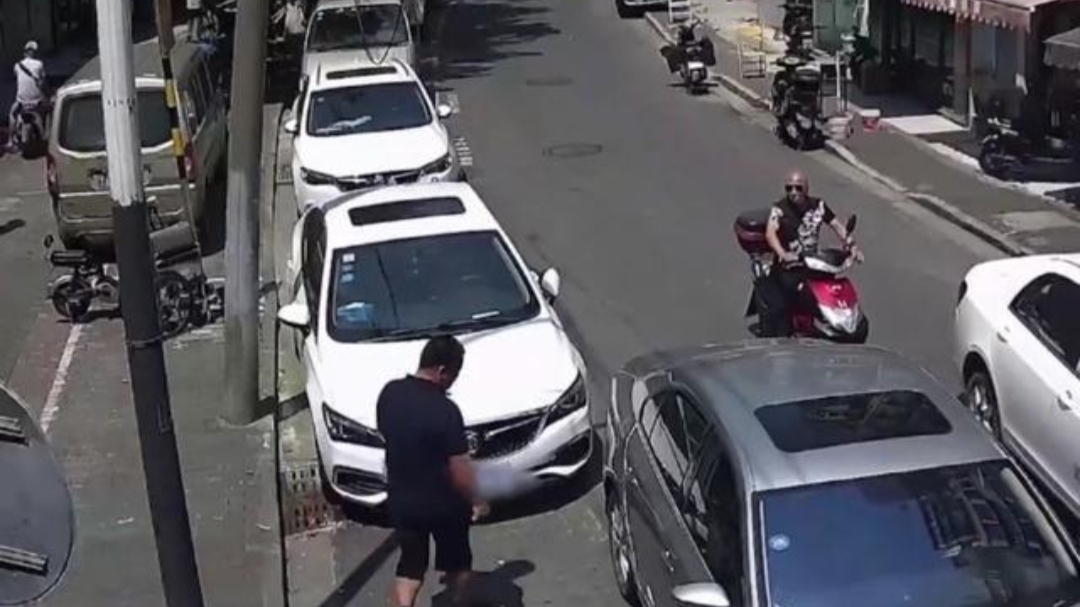 随后,路边的一名黑色衣服男子刚好看到这起刮蹭事故,于是这位陌生男子便镇定自若上前冒充是白色车主,一上来先把灰色车主王先生骂了一顿:“你怎么开车的?这都能划到,你看把我的车划成啥样了?你说怎么办,你自己说怎么办?”