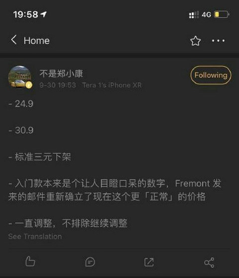 根据社交平台上的爆料,传言目前的国产特斯拉Model3价格调整如下:
